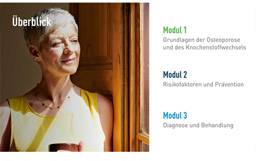 Präsentationsunterlagen zu Grundlagen, Risikofaktoren, Prävention, Diagnose und Behandlung der Osteoporose